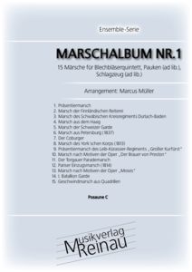 Als Ersatz für Horn F ist diese Stimme auch in B Violinschlüssel für Tenorhorn B, Bariton B, Posaune B oder auch in C Baßschlüssel für Bariton C, Posaune C lieferbar.